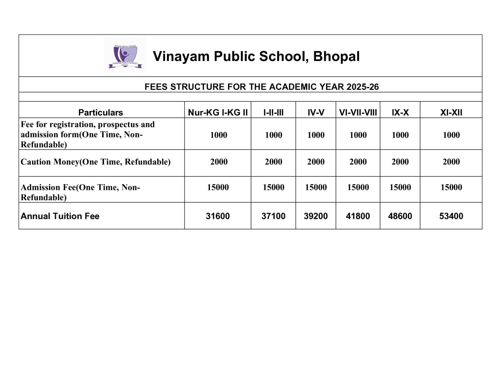 | 1. | Fee Structure of the School | ||